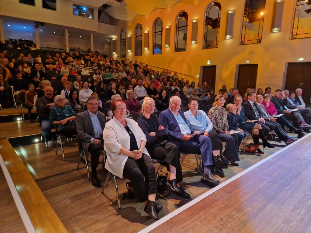 Und da die meisten Märchen vor wörtlicher Rede strotzten, hatte auch das Brandenburger Jugendtheater wieder sicht- und hörbar Spaß am Vortragen. Viele Charaktere lassen viele Erzähler zum Einsatz kommen und sorgen für Lebendigkeit. Einmal mehr erwies sich das Jugendtheater um seinen Leiter Steffan Drotleff als das Salz in der Märchen-Suppe zur Sonntags-Matinee. Das Publikum honorierte jeden Vortrag mit reichlich Applaus, während die jeweils nach einer Lesung ausgezeichneten Autoren über ihr eigenes Werk staunten. Voller Stolz wurde sodann auf großer Bühne der Preis in Empfang genommen, der stets aus Blumen, Urkunde und 150 Euro besteht und im Falle eines Hauptpreises noch eine Undine-Statuette beinhaltet. Sponsoren ermöglichen die Gaben und sorgten vielfach wieder persönlich für die Übergabe. Hatten sie es in Vorjahren mit 7- bis 25-jährigen Siegerinnen und Siegern zu tun, standen sie diesmal bis zu 65-jährigen Gewinnern gegenüber, weil im 20. Undine-Jahr auf die obere Altersgrenze verzichtet wird.