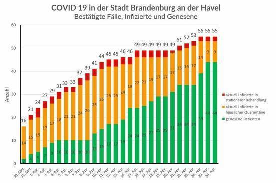 COVID-19-Fallzahlen in der Stadt Brandenburg an der Havel, Stand: 26.04.2020, 14:00 Uhr: