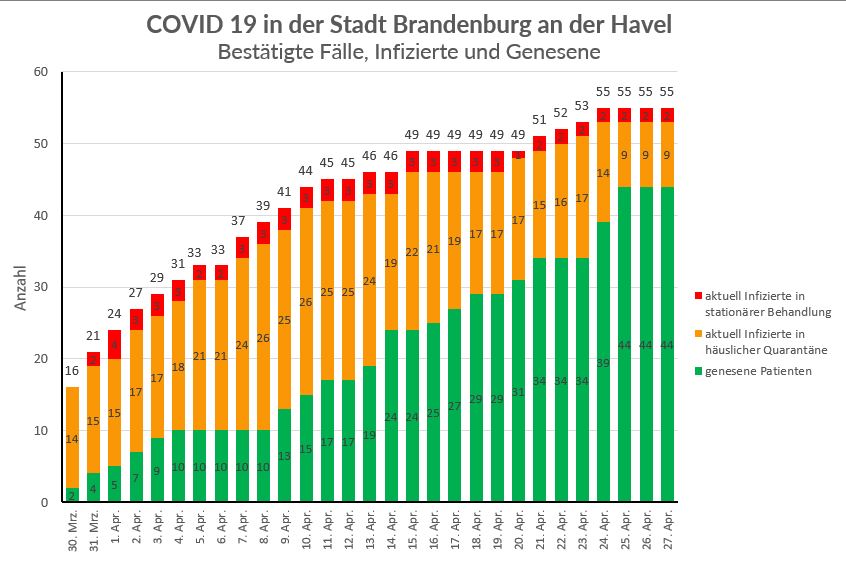COVID-19-Fallzahlen in der Stadt Brandenburg an der Havel, Stand: 27.04.2020, 13:30 Uhr:
