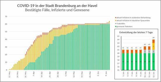 COVID-19-Fallzahlen in der Stadt Brandenburg an der Havel, Stand: 12.06.2020, 14:00 Uhr: