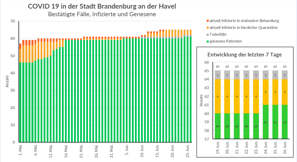 COVID-19-Fallzahlen in der Stadt Brandenburg an der Havel, Stand: 26.06.2020, 10:00 Uhr: