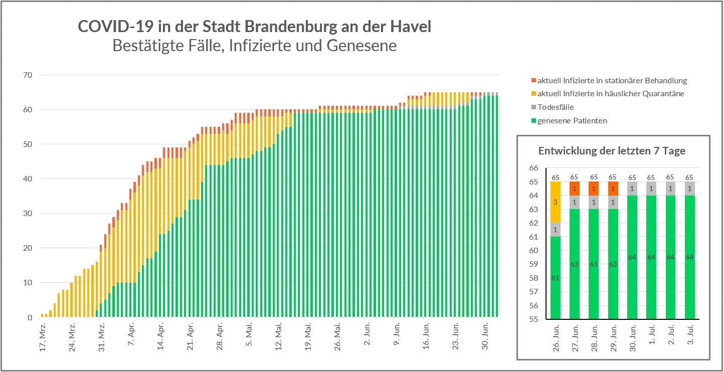 COVID-19-Fallzahlen in der Stadt Brandenburg an der Havel, Stand: 03.07.2020, 10:00 Uhr:
