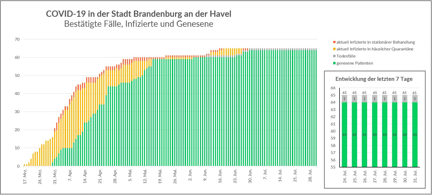 COVID-19-Fallzahlen in der Stadt Brandenburg an der Havel, Stand: 31.07.2020, 10:00 Uhr: