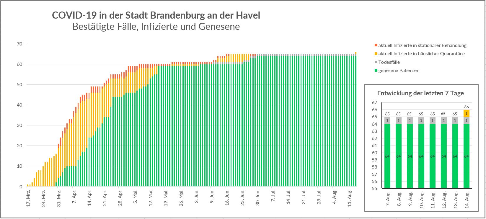 COVID-19-Fallzahlen in der Stadt Brandenburg an der Havel, Stand: 14.08.2020, 10:00 Uhr: