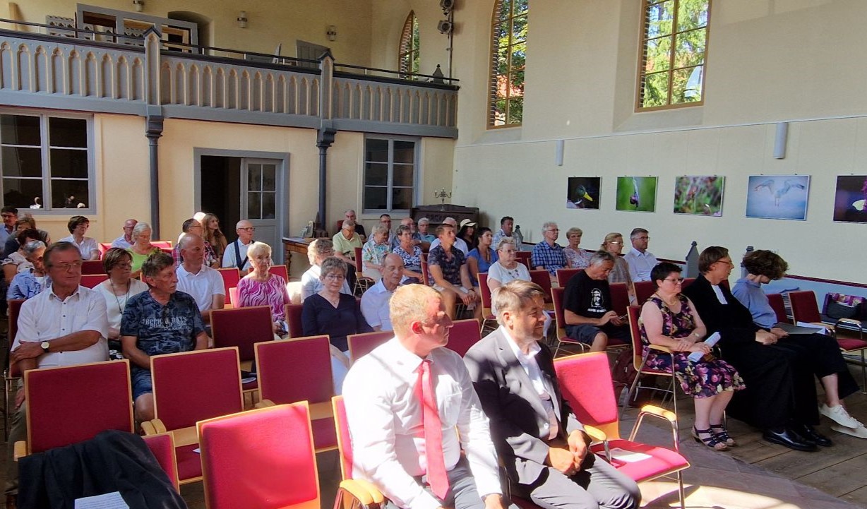 Der Fest-Samstag nahm ebenfalls seinen Anfang in der Kirche – mit einem Festgottesdienst, in dem Carola Brüggemann kurz die Wuster Geschichte vorstellte und Pfarrer Jens Meiburg insbesondere für die Rettung der Kirche dankte. Das im Jahr 1881 gebaute Gotteshaus hatte 1966 seinen letzten Gottesdienst erlebt und war in den 1970er Jahren vom Gemeindekirchenrat zum Abriss freigegeben worden. Weil der DDR auch dafür Kapazitäten fehlten, überstand die Kirche sogar die Wende, wenn auch ohne Inventar und Dach. Ersten Sicherungsmaßnahmen folgte 1998 die Gründung des Vereins zur Ortsgestaltung und zum Erhalt historischer Bauten e.V. (später kulturWust e.V.), der die Sanierung anging und zugleich das originale Inventar deutschlandweit suchte. Mit einem ersten Gottesdienst zur 675-Jahrfeier der Gemeinde Wust im Jahr 1999 machte man das Ansinnen deutlich. 25 Jahre später ist die gerettete Kirche multifunktional in Nutzung und konnte zur Wuster 700-Jahrfeier sogar wieder mit der Kirchturmuhr bestückt werden, deren Uhrwerk vermutlich vor 60 Jahren letztmalig lief. Im September 2023 wurde es geborgen und von dem in Wust aufgewachsenen Uhrmachermeister Klaus-Peter Thiele aufgearbeitet.