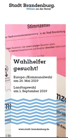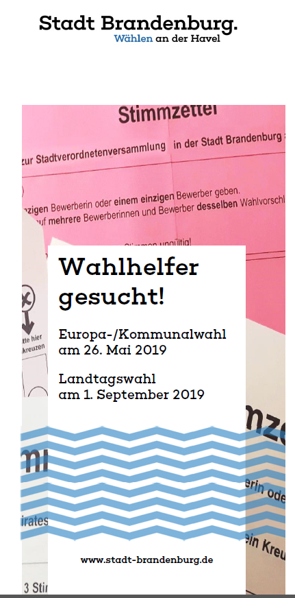 Interessierte wahlberechtigte Bürger melden sich bitte bei der Stadt Brandenburg an der Havel, Stabsbereich Oberbürgermeister, FG 12 / Statistik und Wahlen, Nicolaiplatz 30 / 1. OG., Zi. 105, Telefon (03381) 581022 oder per eMail: wahlenstadt-brandenburg.de.