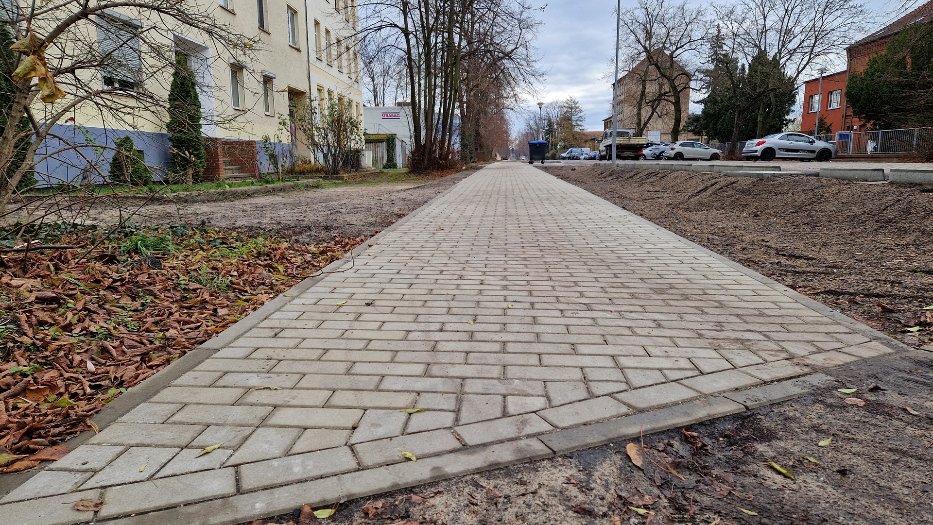 Im Auftrag der Stadt Brandenburg an der Havel führte die Firma HTB aus Wenzlow alle Arbeiten fachgerecht aus. Neben der Pflasterung des Gehweges und dem Anlegen von Entwässerungsmulden wurden gleichzeitig Bäume gepflanzt, die einen Ersatz für gefällte Bäume darstellen.