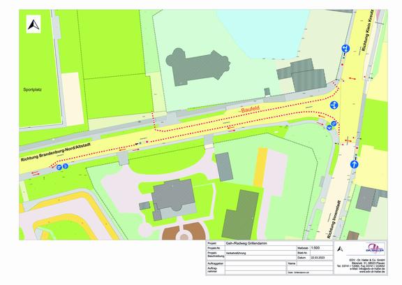 Für Fußgänger und Radfahrer ergeben sich durch die Vollsperrung des nördlich am Sportplatz gelegenen Geh-/ Radweges ebenfalls Änderungen.