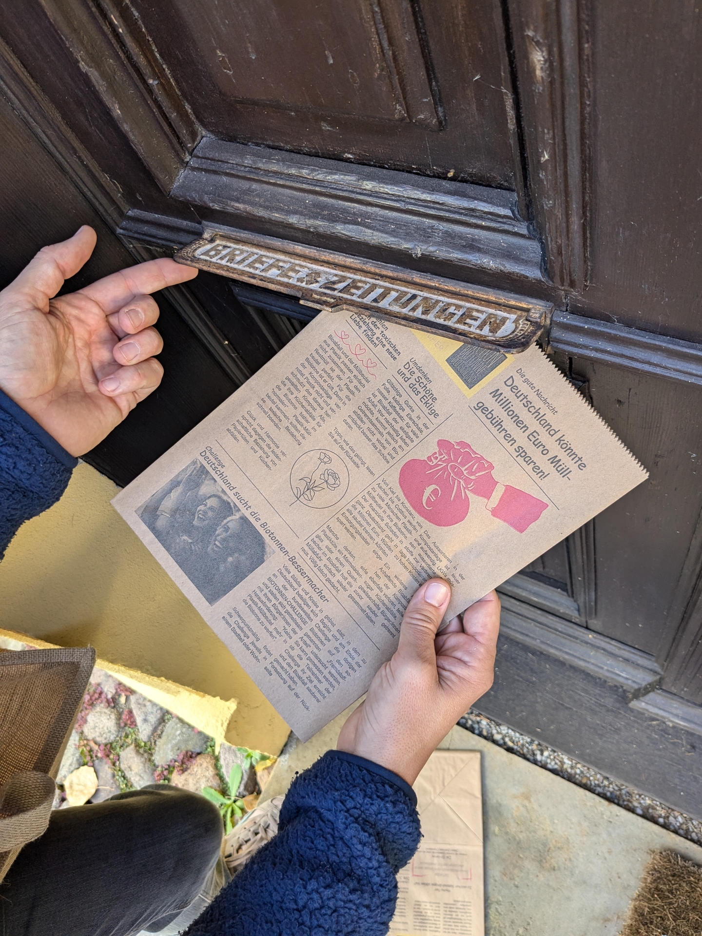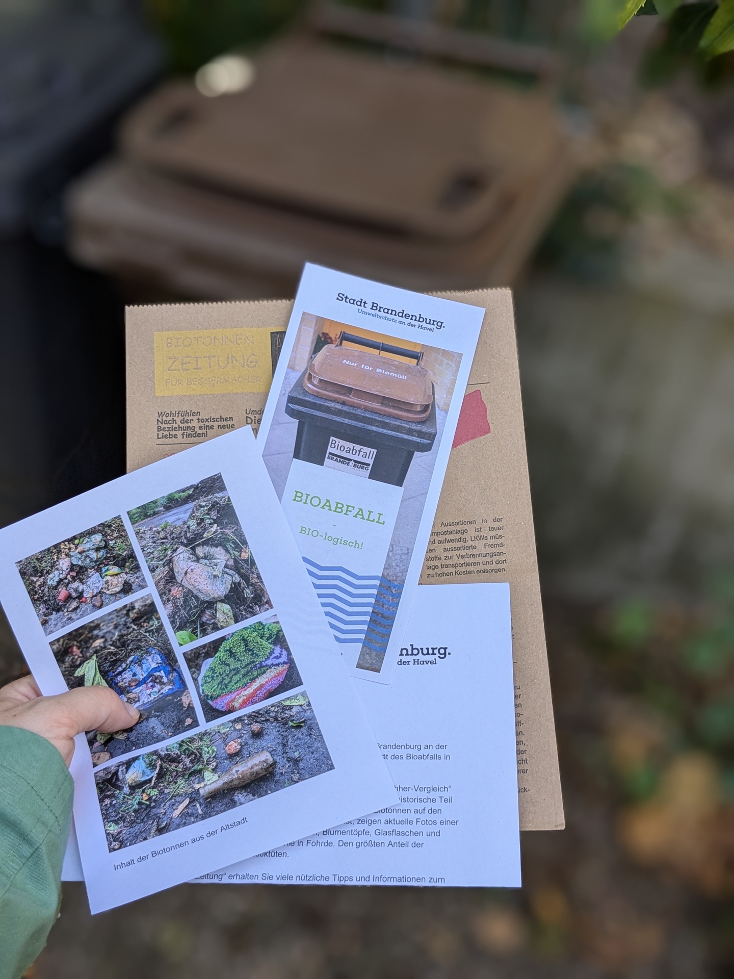 Im Rahmen der „Biotonnenchallenge“ haben Mitarbeitende des Amtes für Abfallwirtschaft, Bodenschutz und Grünflächen zu Beginn der Woche die „Biotonnenzeitung“ an einige Haushalte der Havelstadt verteilt.
