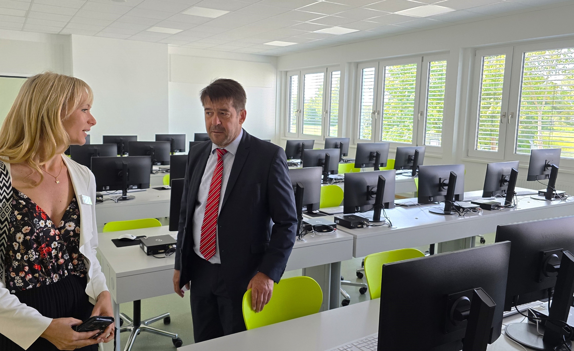 „Hier in der Caasmannstraße ist im Laufe der Jahre ein wirklich schöner Schulstandort gewachsen. Angefangen beim Oberstufenzentrum, das selbst aus einem älteren Teil und dem abgerundeten Neubau besteht und nun im Zusammenwirken mit der neuen Oberschule ein freistehendes Erweiterungsgebäude zur Seite bekommen hat. Und da in den Sommerferien, während im Innern der Umzug stattfand, auch auf dem Schulhof richtig viel passiert ist, haben die Schülerinnen und Schüler nun beste Voraussetzungen und die Lehrerinnen und Lehrer schöne und moderne Arbeitsbedingungen,“