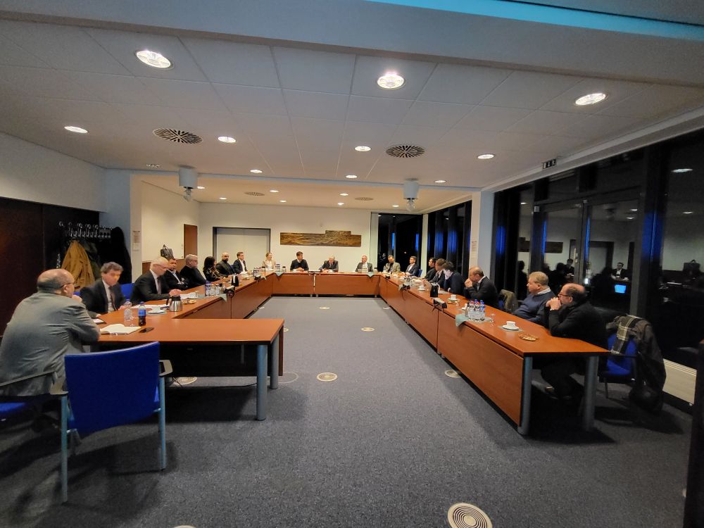 Anlässlich eines Unternehmergespräches am Mittwoch, 11. Januar 2023, begrüßte Oberbürgermeister Steffen Scheller neben ansässigen Unternehmern auch den brandenburgischen Wirtschaftsminister Jörg Steinbach.