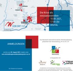 In diesem Jahr wird die Veranstaltung „W vor Ort" erstmals komplett digital stattfinden, sozusagen 2.0. Es werden Unternehmen fokussiert, die die Krise als Innovationstreiber genutzt haben. Der GastHof Milow, das Streamquartier aus Brandenburg an der Havel sowie Family Fitness Rathenow berichten, wie sie ausgelöst durch die Coronapandemie ihr Geschäftsmodell modifizieren mussten und dabei erfolgreiche Entwicklungen verzeichnen konnten.