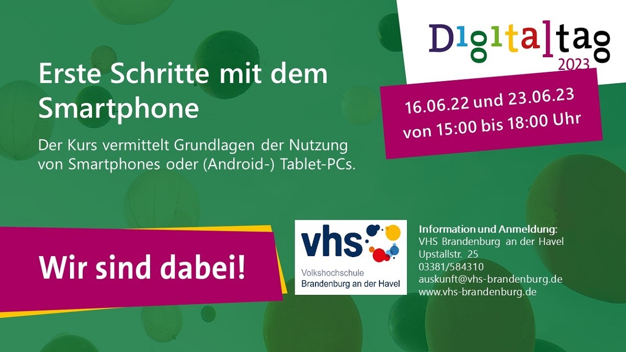 Die VHS möchte am Digitaltag, 16. Juni 2023, mit dem Kompaktkurs „Smartphones – erste Schritte“ (15:00 – 18:00 Uhr) Interessierte bei der gezielten Nutzung von Smartphones oder Tablet-PCs (Android-Betriebssystem) begleiten.