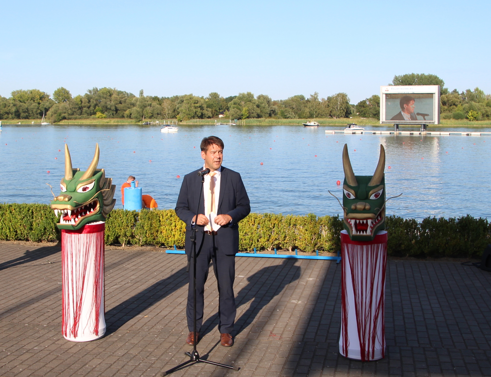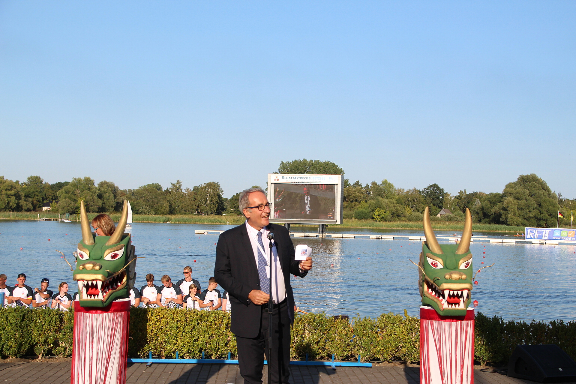 Auch Ute Becker-Frenzel, Präsidentin des Deutschen Drachenboot Verbandes e.V. (DDV), und Claudio Schermi, Präsident der Europäischen Drachenbootvereinigung (EDBF), lobten die Organisatoren. Außerdem bedankten sie sich bei der Gastgeberstadt Brandenburg an der Havel für die Bereitstellung der traditionsreichen und hochmodernen Naturregattastrecke „Beetzsee“, die ideale Bedingungen für das Spitzentreffen der besten europäischen Nationalmannschaften bietet.
