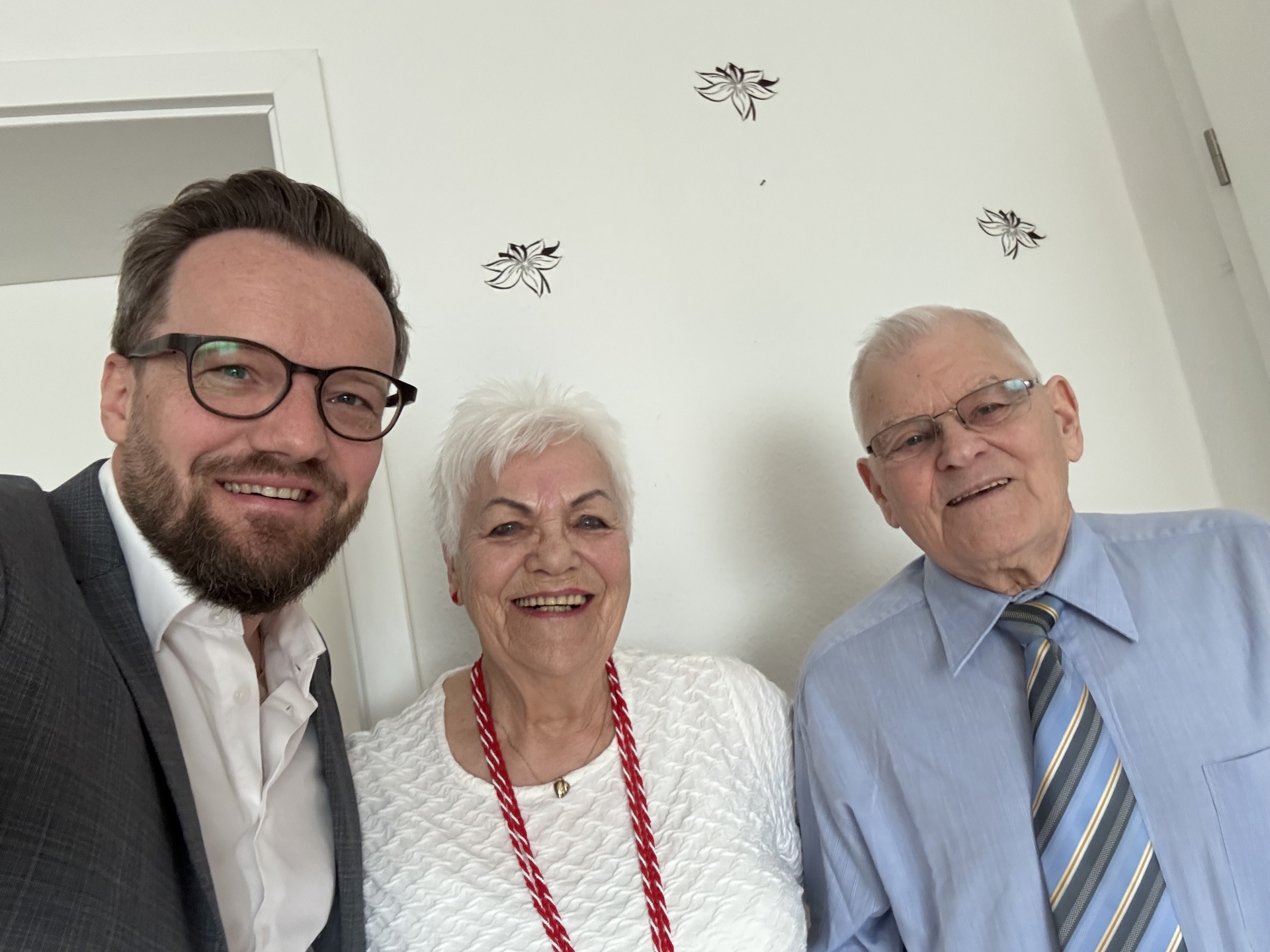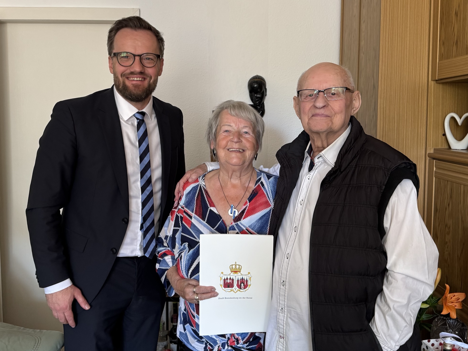 So läuteten schon in der Woche vor dem Osterfest im Jahre 1960 die Hochzeitsglocken in Brandenburg an der Havel recht häufig, was dazu führte, dass Bürgermeister Michael Müller in der Woche vor Ostern 2025 gleich dreifach Blumen und Glückwünsche der Stadt Brandenburg an der Havel an eiserne Hochzeitspaare überbringen konnte. In Vertretung des urlaubenden Oberbürgermeister Steffen Scheller gratulierte er binnen vier Tagen Gertrud & Hans-Joachim Schlaegel, dann Hildegard & Gerhard Schmidt sowie schließlich Gerda & Hans Neumann zum 65. Hochzeitstag.