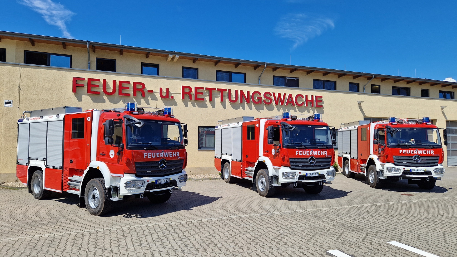 Während sich gegenwärtig das aufwendigere Tanklöschfahrzeug für die FF Mahlenzien noch in der Ausschreibung befindet, konnte das Löschgruppenfahrzeug-Trio für die drei weiteren Ortsteile bereits zum Jahresende 2022 ausgeschrieben werden, woraufhin am 5. Juni 2023 die Zuschlagerteilung an die Rosenbauer Deutschland GmbH, Vertriebszentrum Luckenwalde, zum Preis von 317.842,86 € je Fahrzeug erfolgte, was sogar ca. 36.000 € unter der Kostenschätzung lag. Sodann kam auf jedes der drei Mercedes-Fahrgestelle ein Rosenbauer-Aufbau und am 27. September 2023 folgte der Beschluss der Stadtverordnetenversammlung zur überplanmäßigen Mittelbereitstellung für die Beladung, die allerdings die geplanten Kosten überstieg. Sie schlug für Gollwitz und Klein Kreutz mit je 93.021,71 € zu Buche und für Schmerzke – wegen des Einsatzschwerpunktes BAB 2 – mit 103.828,69 €. Die finale Zuschlagserklärung ging an die BTL Brandschutztechnik GmbH in Leipzig. Zur Einweisung und Abholung konnten Kollegen der Berufsfeuerwehr und Mitstreitende der jeweiligen Ortswehr am 16., 18. und 29. Juli ausrücken, sodass am 30. Juli 2024 stolz das Fahrzeug-Trio auf dem Hof der Feuer- und Rettungswache präsentiert werden konnte. Allerdings hatte die FF Schmerzke die Vorfreude einer frühzeitigen Fahrzeuginbesitznahme bereits im Rahmen ihrer 100-Jahrfeier am 28. Juni genießen dürfen. Uwe Hohn, kommissarischer Leiter des Amtes für Feuerwehr und Rettungswesen: