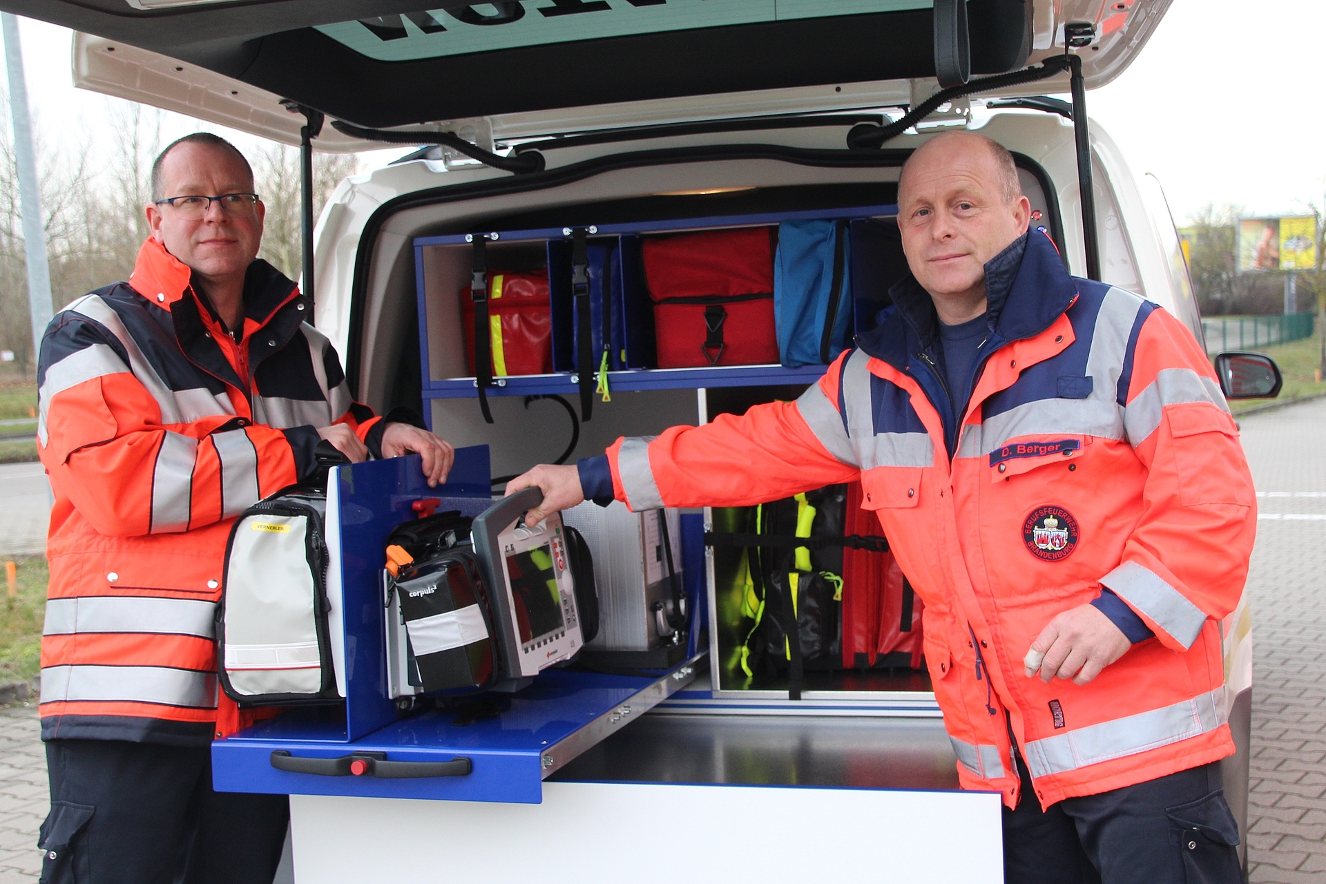 Am Donnerstag, dem 07.03.2019, stellten Mathias Bialek, Leiter des Fachbereichs Feuerwehr und Rettungswesen, und mehrere Mitarbeiter des Rettungsdienstes der Stadt Brandenburg an der Havel drei neue Einsatzfahrzeuge vor.