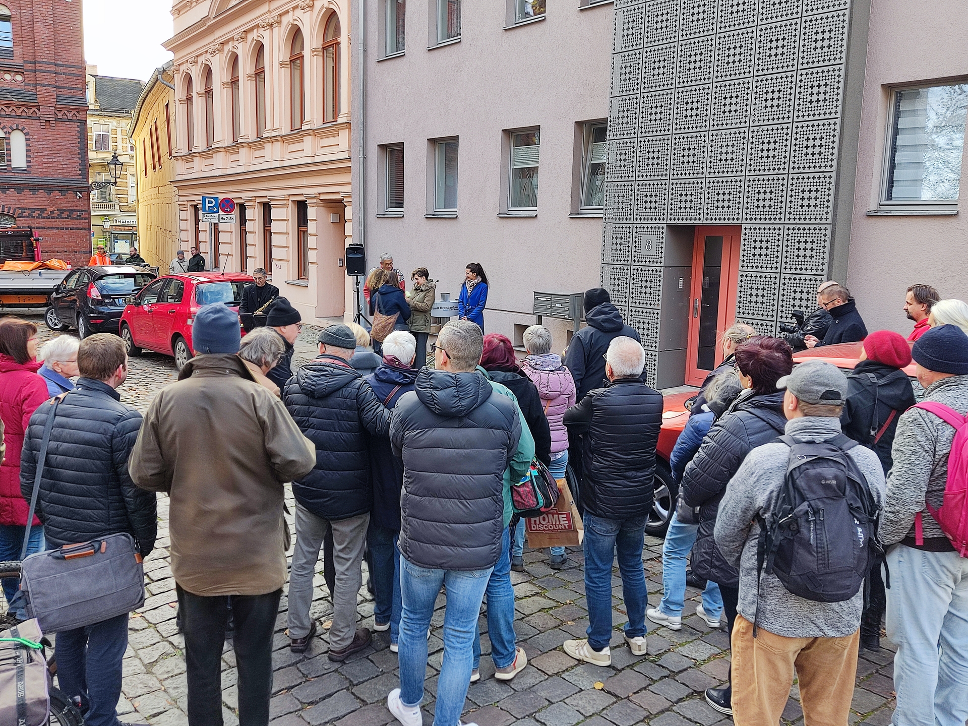 Am Freitag, dem 10. November 2023, wurden im Gedenken an die jüdische Ärztin Dr. Luise „Lilli“ Friesicke und ihre Kinder Heinz Herbert und Marlene an ihrer letzten bekannten Wohnadresse in Brandenburg an der Havel, dem Katharinenkirchplatz 8, drei Stolpersteine verlegt.