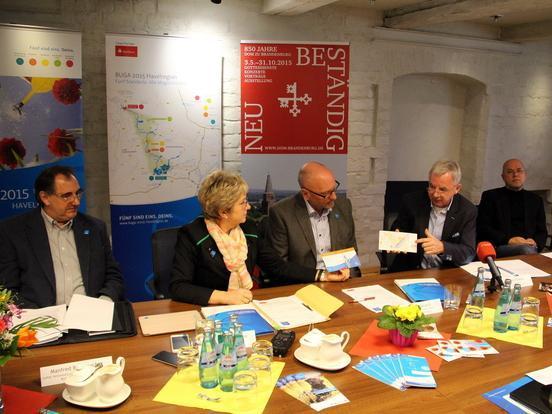 Am heutigen Tag informierte Zweckverbandsvorsitzende und Oberbürgermeisterin Dr. Dietlind Tiemann zusammen mit ihren Amtskollegen im Rathaus der BUGA-Stadt Brandenburg an der Havel über den Ablauf der umfangreichen Eröffnungsfeierlichkeiten.