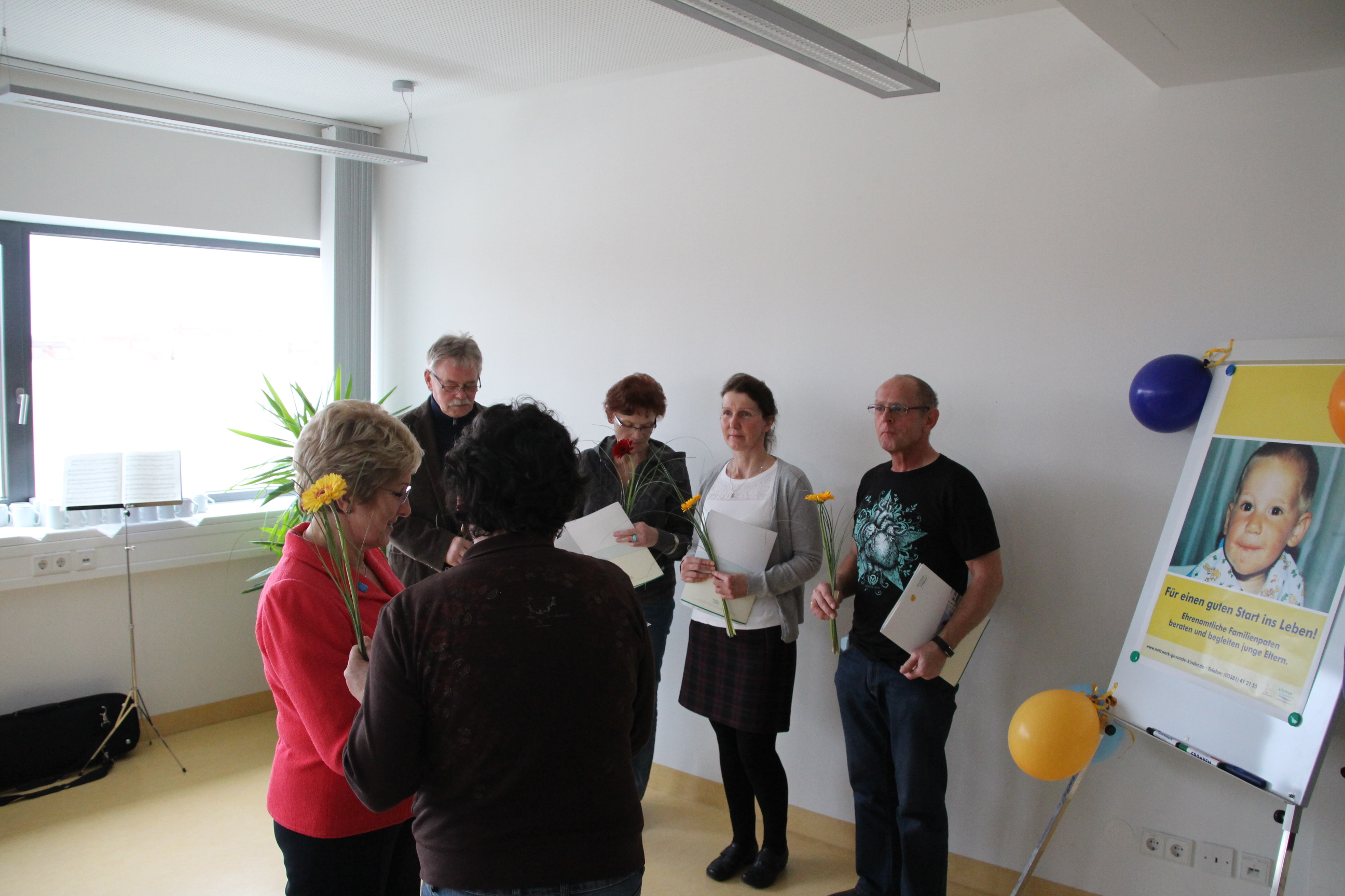 Ein Schwerpunkt der Arbeit des Netzwerkes ist die Ausbildung von ehrenamtlich tätigen Familienpaten, die nach der erfolgreichen Absolvierung eines Schulungskurses jungen Familien auf deren Wunsch zu Seite gestellt werden können. Von der Schwangerschaft bis zum dritten Lebensjahr helfen sie als neutrale und zuverlässige Ansprechpartner in allen Fragen 'rund ums Kind'. „Gerade nach der Geburt eines Kindes ist doch Vieles völlig auf den Kopf gestellt und manchmal bedarf es einfach eines vertrauten Menschen, der mit Wissen, Rat und Tat oder vielleicht nur mit ein paar aufmunternden Worten zur Seite steht“ fasst Netzwerkkoordinatorin Andrea Schumacher die Hintergründe und Ziele zusammen. Von den bisher insgesamt ausgebildeten 95 sehr engagierten Familienpatinnen und -paten werden derzeit 225 Familien mit 291 Kinder liebevoll durch den Familienalltag begleitet.