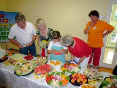 Auf Initiative der Verbraucherzentrale Brandenburg und mit Unterstützung des Gesundheitsamtes der Stadt Brandenburg an der Havel werden Kinder an ein gesundes Frühstück gewöhnt. Gemeinsam mit Ernährungsberaterin Veronika Wrobel von der Verbraucherzentrale Brandenburg half Oberbürgermeisterin Dr. Dietlind Tiemann heute den Kindern der Kita „Schritt für Schritt“ beim Packen der Brotdosen. Dazu sollten ein Vollkornbrot, ein Stück Gemüse und ein Stück Obst gehören.