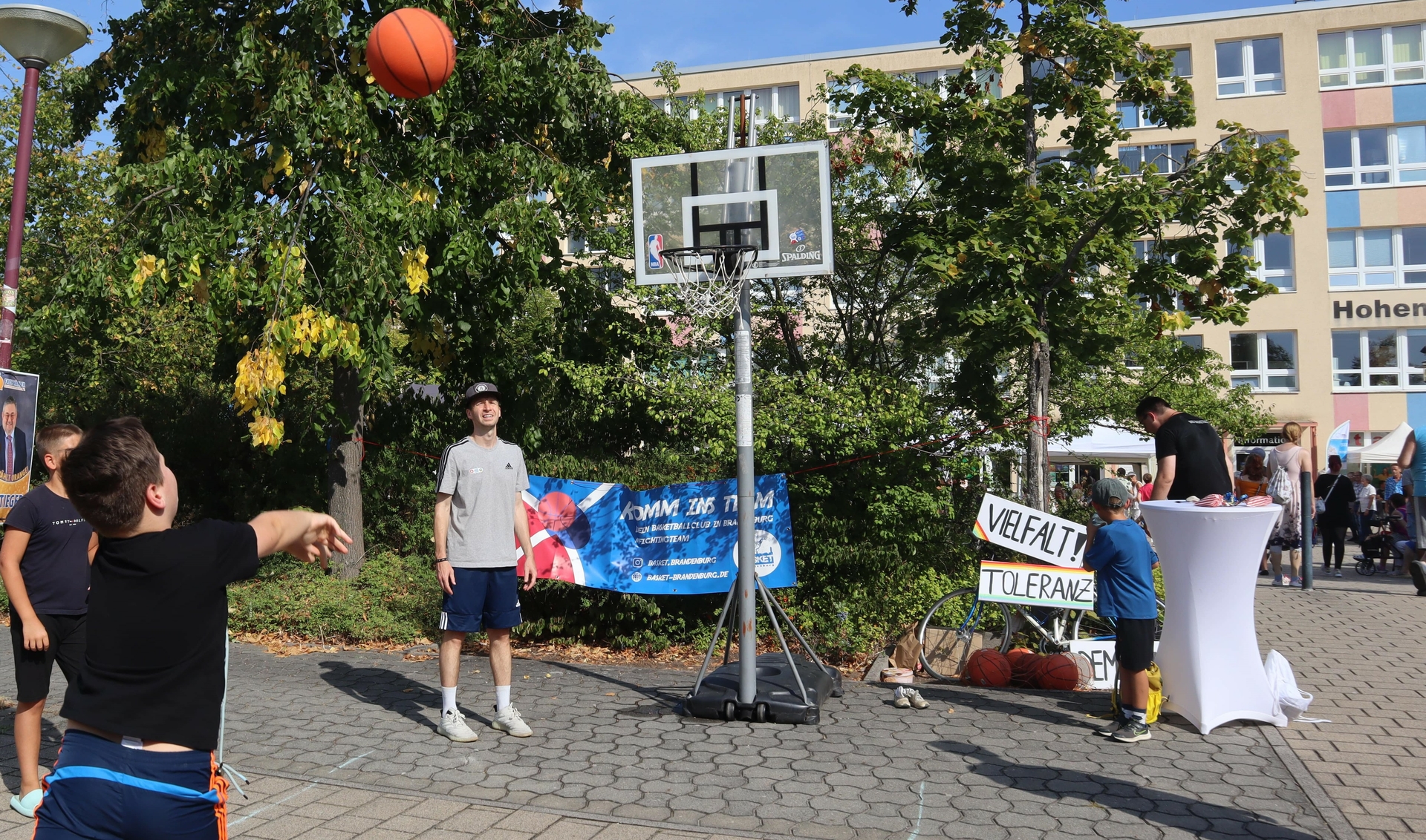 Im Schatten von Pavillons genossen die Gäste dann das Bühnenprogramm bei Kuchen, Bratwurst und Erfrischungsgetränken, die das „Café Martha“ vom SPZ Brandenburg und der Verein AuWiHo organisierten. Dabei sahen die zahlreichen Besucher den Deutschen Jugendmeister der Zauberkunst Till Weyerstall, die Tänzerinnen der Line Dance Gruppe aus dem Bürgerhaus und eine TSA-Jumping-Vorführung.