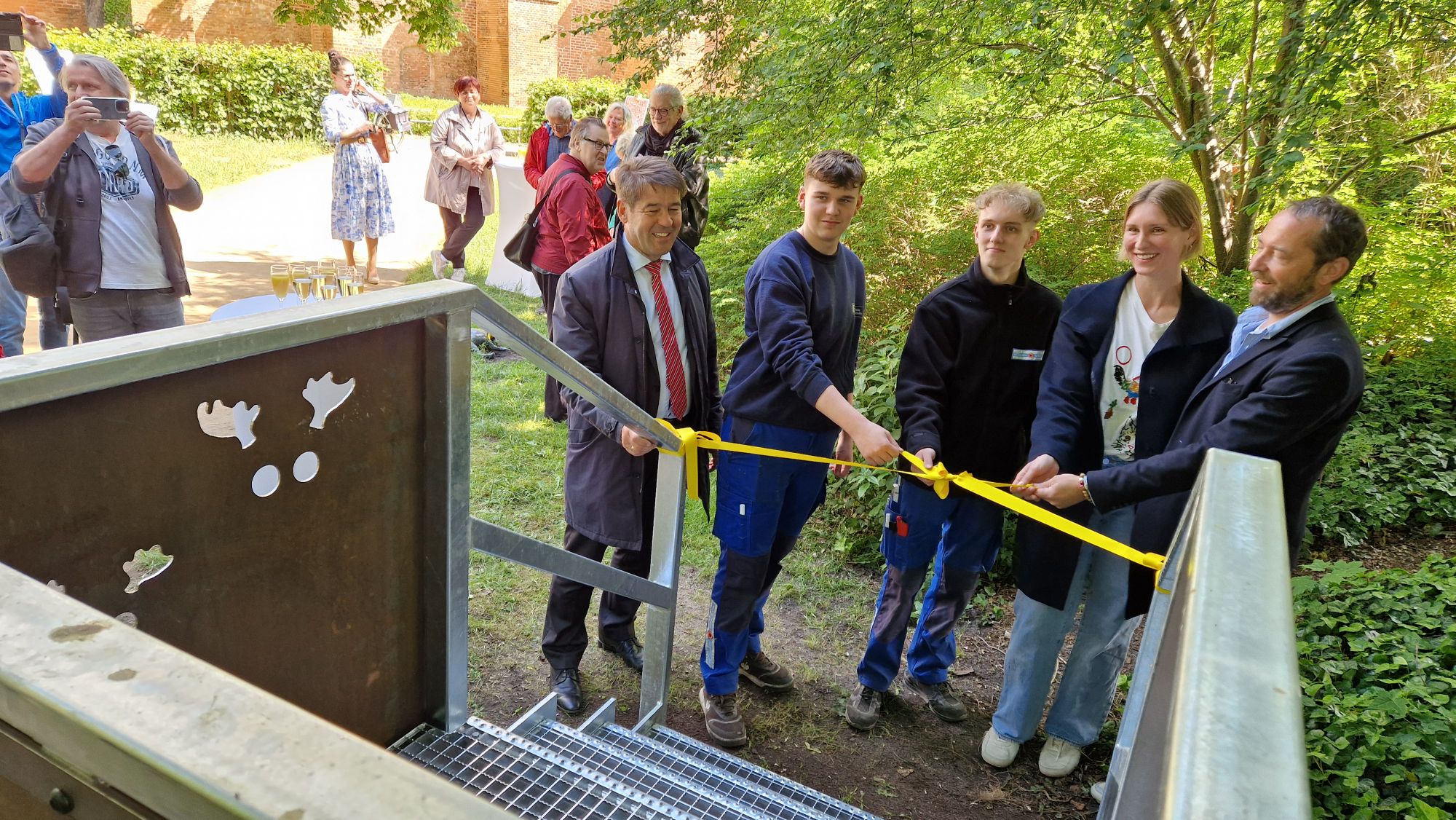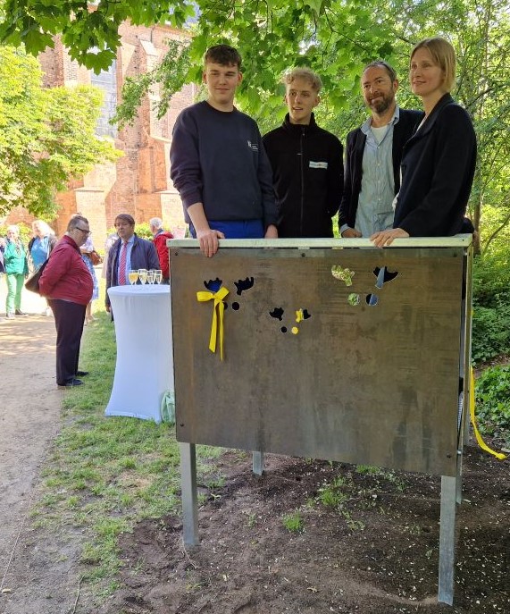Ihr Mann, Künstler Raphael Danke, hat dafür gesorgt, dass die neue Aussichtsplattform schick und funktional ist, für die Umsetzung sorgten die Lehrlinge Eddie Schulte und Luca Behnke von der spendablen Metallbaufirma Windeck. Die Umsetzung des Projektes erfolgte in enger Zusammenarbeit mit dem Denkmalamt und mit dem Kulturbüro.