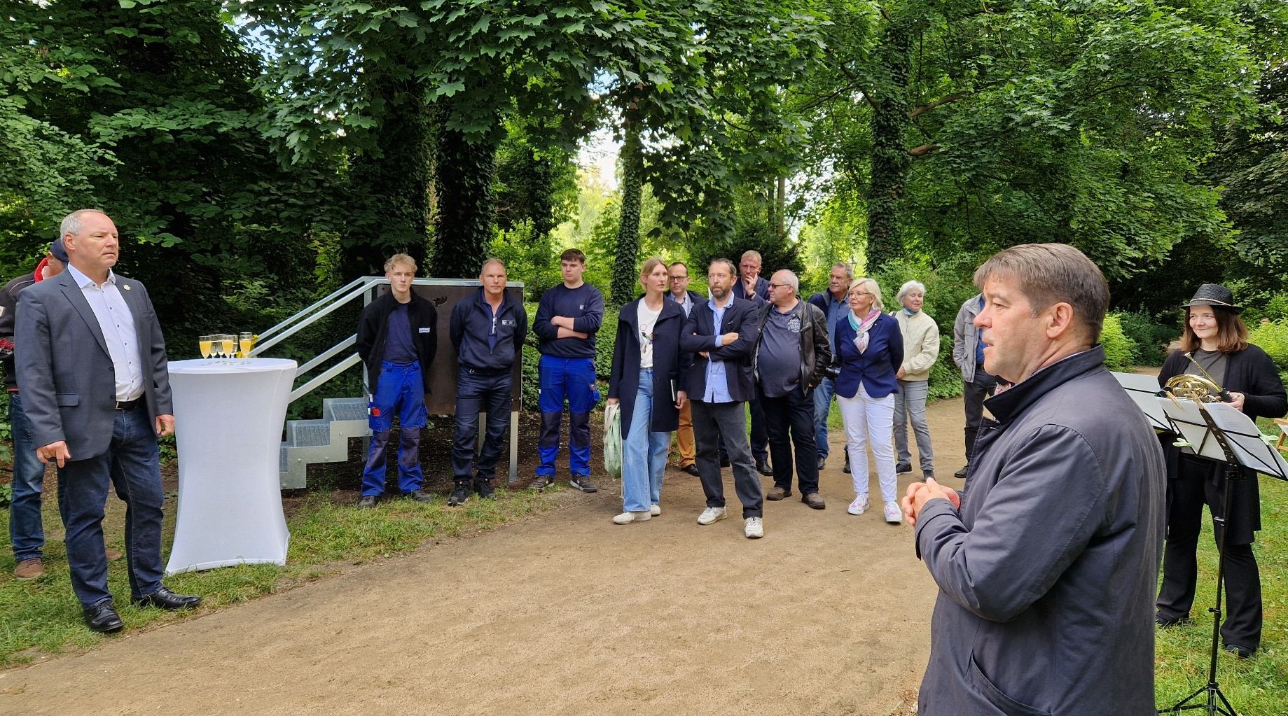 Zur Einweihung, die das „Ladys Horn Trio“ musikalisch begleitete, war Künstlerin Clara Danke gekommen und erzählte: