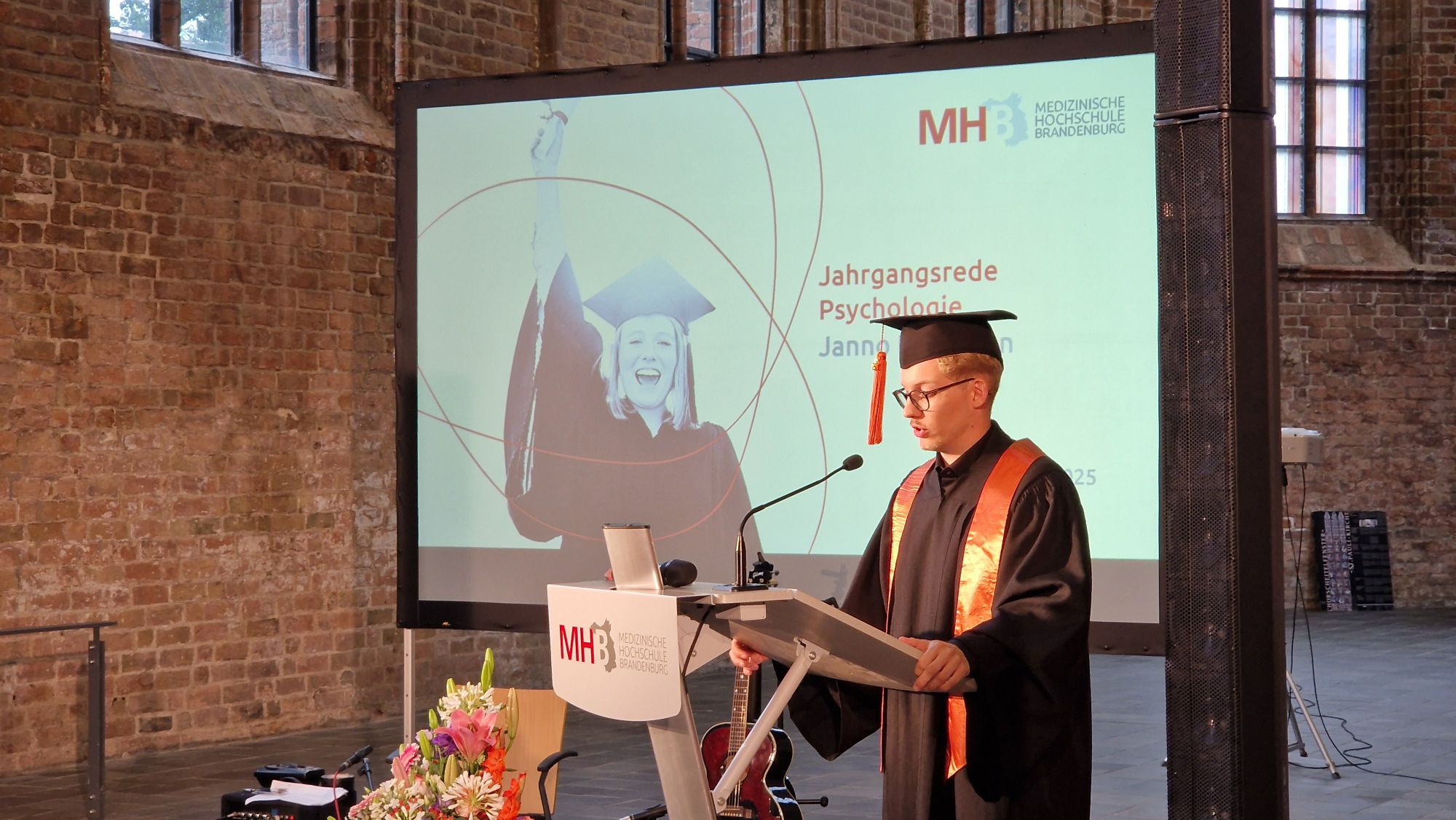„Und wir hoffen auch, dass sie die Strukturen mitgestalten und nicht nur in den bestehenden Strukturen funktionieren. Wir hoffen, dass wir Ihnen dazu in den Jahren an der MHB ausreichend viel Neugier, Mut und Kraft gegeben haben.“