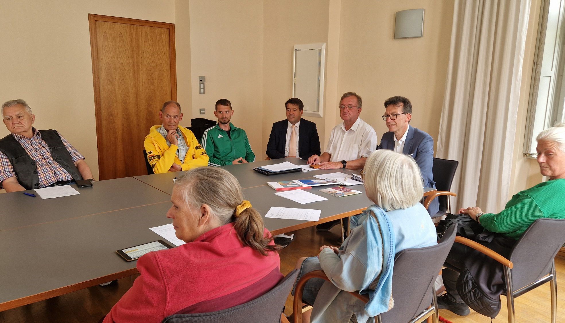 Oberbürgermeister Steffen Scheller hat sich mit dem Seniorenbeauftragten des Landes Brandenburg Norman Asmus, Sozialamtsleiterin Kerstin Schöbe, Sozialplanerin Natalie Wateau und Mitgliedern des Seniorenbeirats zu einem zweistündigen Meinungsaustausch im Rathaus getroffen.
