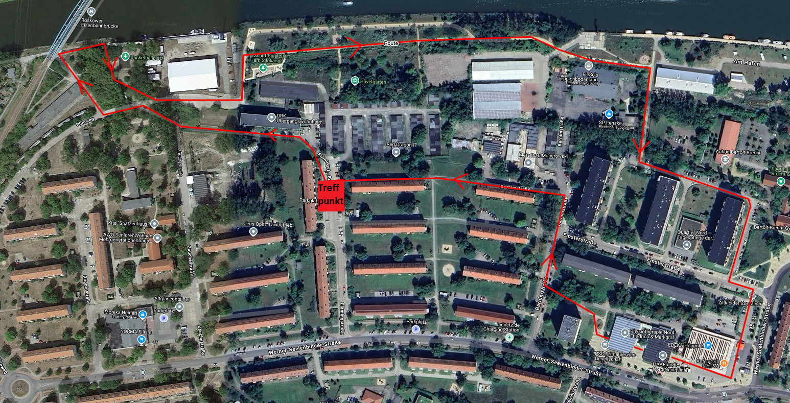 Treffpunkt ist auf dem Parkplatz in der Nähe des ehemaligen Übergangswohnheimes für Geflüchtete in der Flämingstraße.
