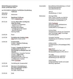 Am Nachmittag erwarten Sie interessante Vorträge wie: Resilienzförderung, Umgang mit Kindern aus Suchtfamilien, stigmafreie Gesprächsführung.