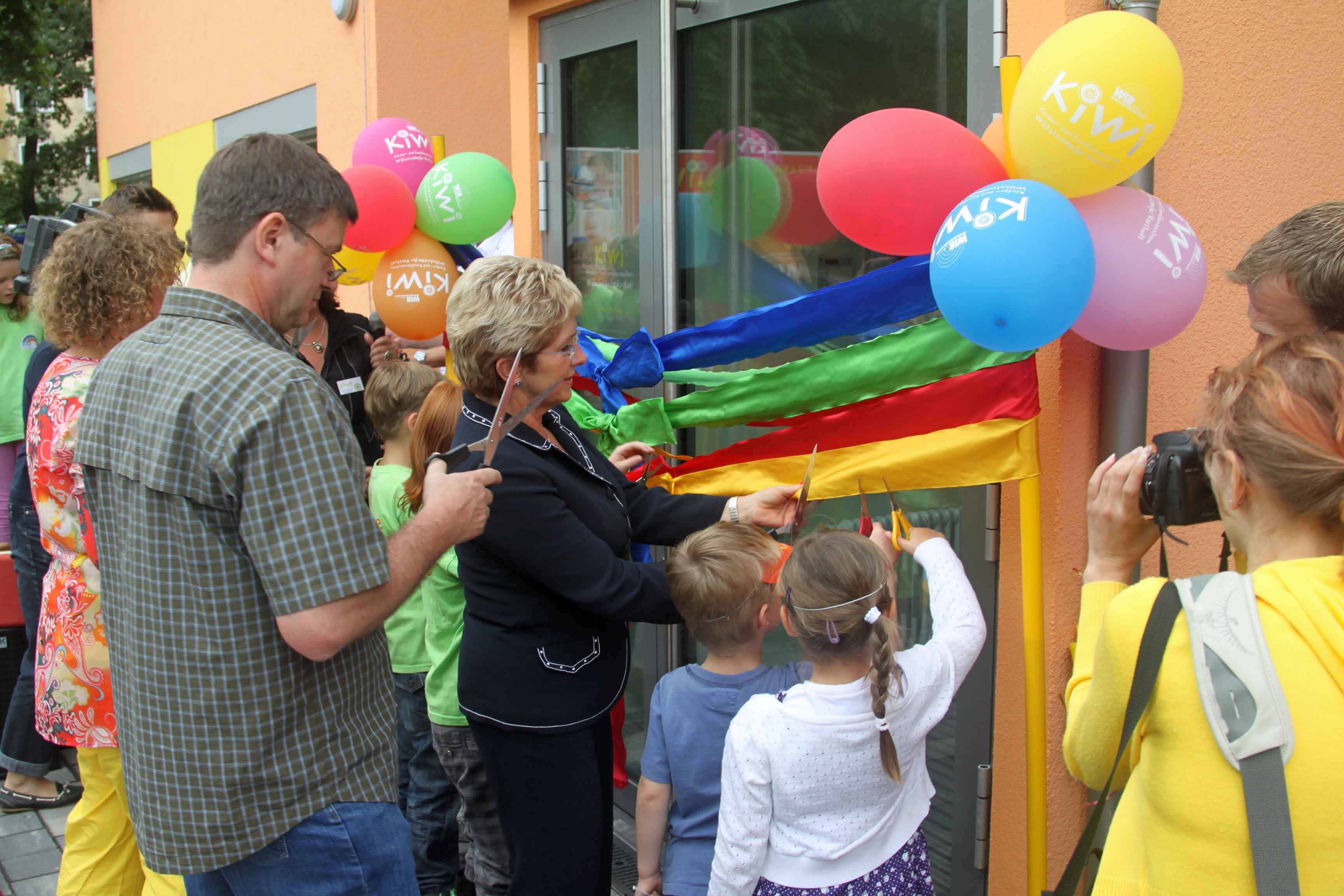 Jacqueline Damus, Leiterin des KiWi (Kinder- und Familienzentrum Wilhelmsdorfer Vorstadt), dankte Oberbürgermeisterin Dr. Dietlind Tiemann für die Unterstützung und die gute Zusammenarbeit mit der Verwaltung sowie den am Bau beteiligten Firmen.