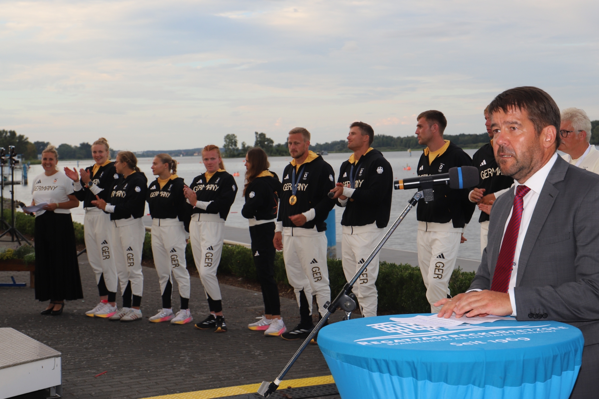 Auf der Regattastrecke am Beetzsee wurden im Rahmen der 103. Deutschen Meisterschaften im Kanurennsport am Freitagabend im Beisein von Sportstaatssekretärin Claudia Zinke, der deutschen Kanu-Präsidentin Dajana Pefestorff und Oberbürgermeister Steffen Scheller die Olympiateilnehmer des Kanusports geehrt und die Para-Kanutinnen zu den Paralympischen Spielen nach Paris verabschiedet.
