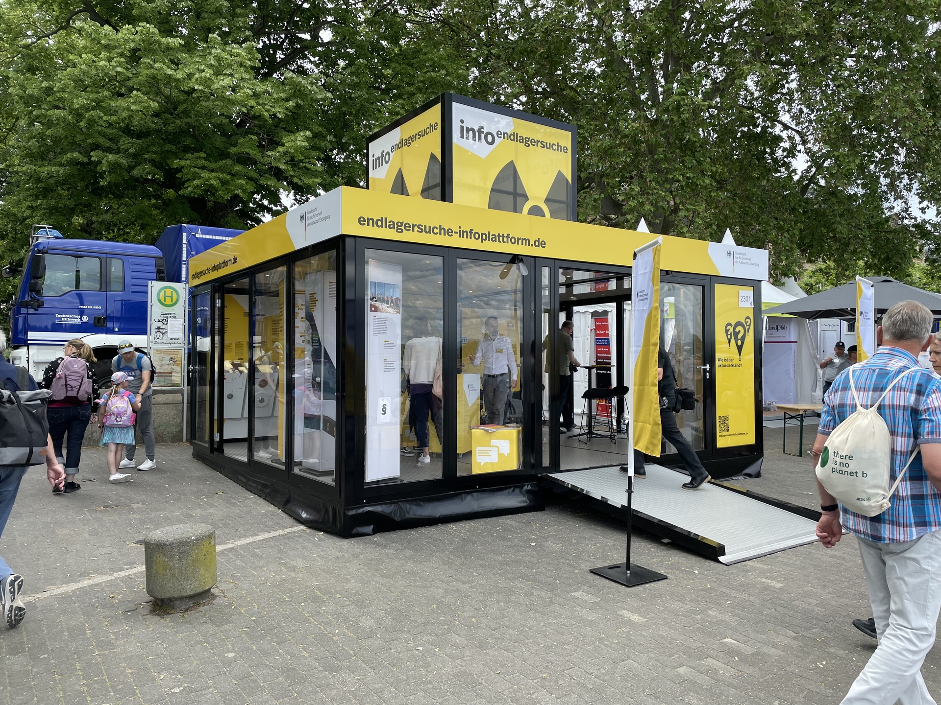 Die Ausstellung vermittelt einen schnellen Überblick über das Suchverfahren und wie sich Bürgerinnen und Bürger daran beteiligen können. Vor Ort antworten unsere Mitarbeiterinnen und Mitarbeiter auf Ihre Fragen oder diskutieren gerne zu verschiedenen Aspekten rund um das Thema Endlagerung. Wir laden Sie herzlich ein, sich selbst ein Bild zu machen.