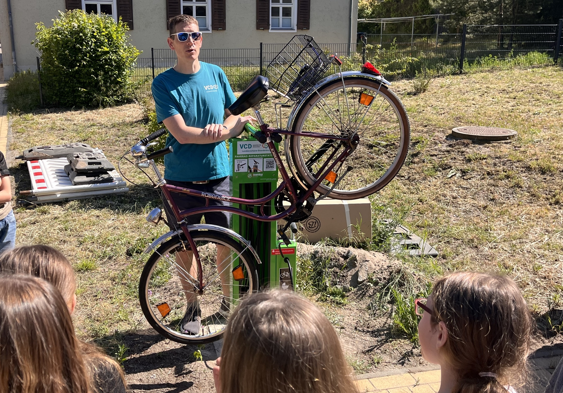 An der Magnus-Hoffmann-Schule in Kirchmöser wurde am Vormittag eine neue, öffentlich zugängliche Fahrrad-Reparaturstation eingeweiht. Damit baut der VCD Brandenburg das Netz an kostenfreien Reparaturmöglichkeiten in der Stadt weiter aus. Besonders im Fokus stehen aktuell Standorte an Schulen und sozialen Einrichtungen. Insgesamt werden derzeit 13 öffentlich zugängliche Stationen betrieben. Hier finden Sie eine Übersicht.