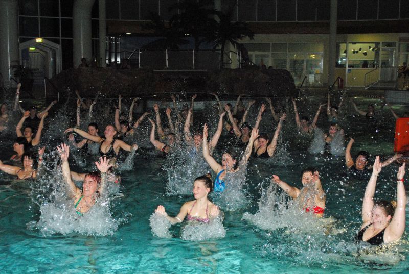 Beim „Zumba“ im Marienbad schwappte das Funbecken über. 50 ausgelassene