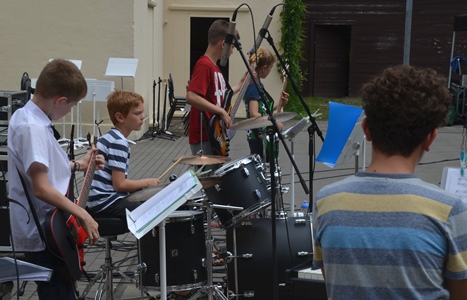 Die Freilichtbühne war den Schulbands und Streichensembles vorbehalten. Die Nachwuchsband „Geld wie Heu“ machte den Anfang, gefolgt von der Schulband „Knapp bei Kasse“, die sich nach 5 Jahren Aktivität auflösen wird.