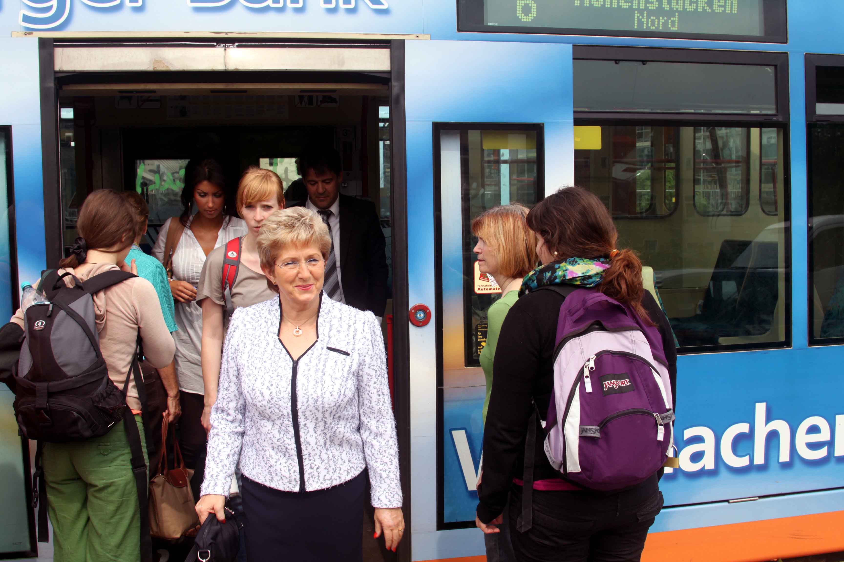 Über die zentrale Lage und der damit verbundenen guten Erreichbarkeit mit dem öffentlichen Personennahverkehr überzeugte sich die Oberbürgermeisterin persönlich und fuhr mit Bürgermeister Steffen Scheller mit der Straßenbahn zur Eröffnung.