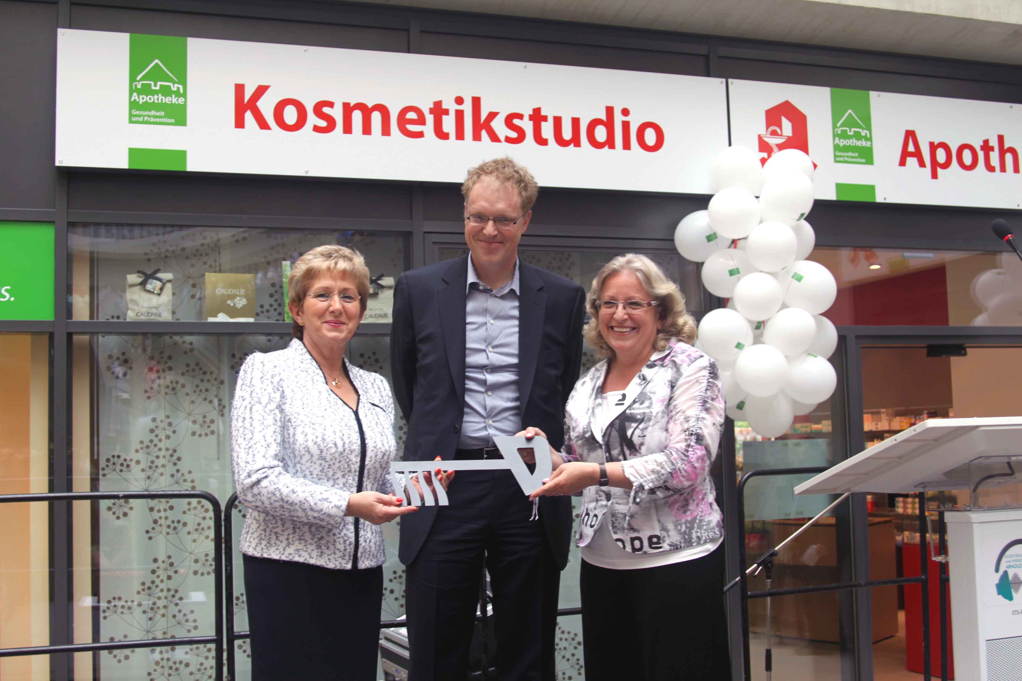 Symbolisch bekamen Oberbürgermeisterin Dr. Dietlind Tiemann und Gabriele Wolter, Geschäftsführerin des Städtischen Klinikums den Schlüssel für das neue Eingangstor zur Stadt von Edzard Schultz, Vertreter des Architekturbüros, überreicht.