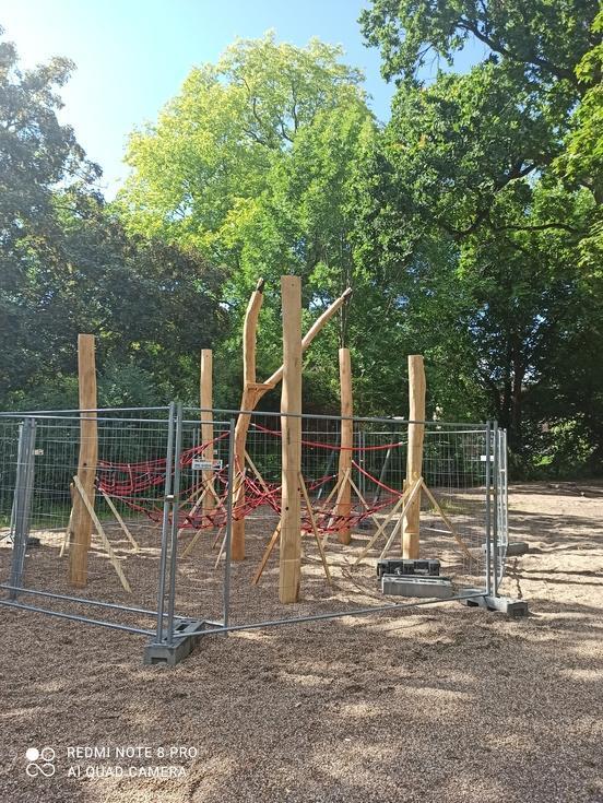 Nach erfolgter sicherheitstechnischer Abnahme in der 34. Kalenderwoche wird der Bauzaun entfernt und lädt dann alle Kinder zum Klettern und Spielen ein.