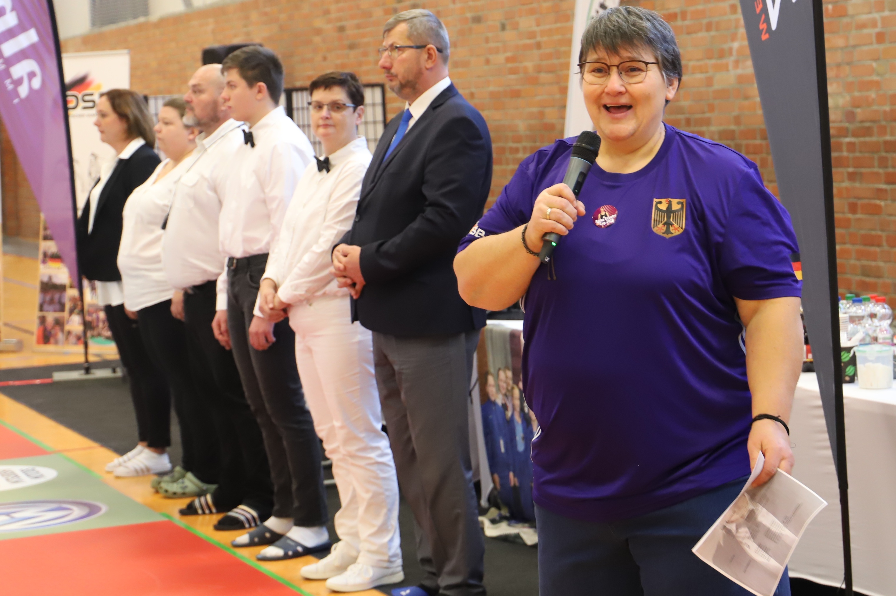 In ihrer Eröffnungsrede erinnerte Weltmeisterin Sandra Köppen-Zuckschwerdt von dem PSG Dynamo Brandenburg e.V. an das Leben ihrer Freundin, die nur 40 Jahre alt wurde. Bilder aus ihrem Leben wurden an einer Leinwand gezeigt.