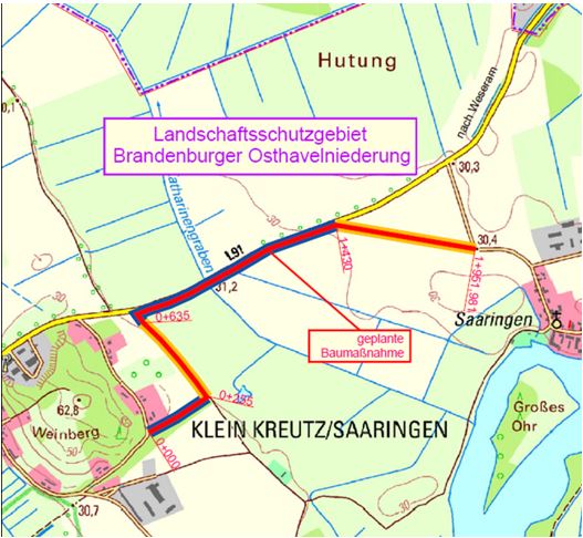 Der 1. Abschnitt des Beetzsee- Havel-Radweges zwischen Saaringen und der Gemarkungsgrenze Weseram wurde in den Jahren 2010 /11 realisiert. 2010 wurde die Entwurfs- und Genehmigungsplanung für den 2. Abschnitt des Radwegs zwischen den Ortsteilen Klein Kreutz und Saaringen erarbeitet. Er stellt das Bindeglied zwischen dem Radweg in der Ortslage Klein Kreutz und dem 1. Abschnitt des Beetzsee-Havel-Radweges dar.