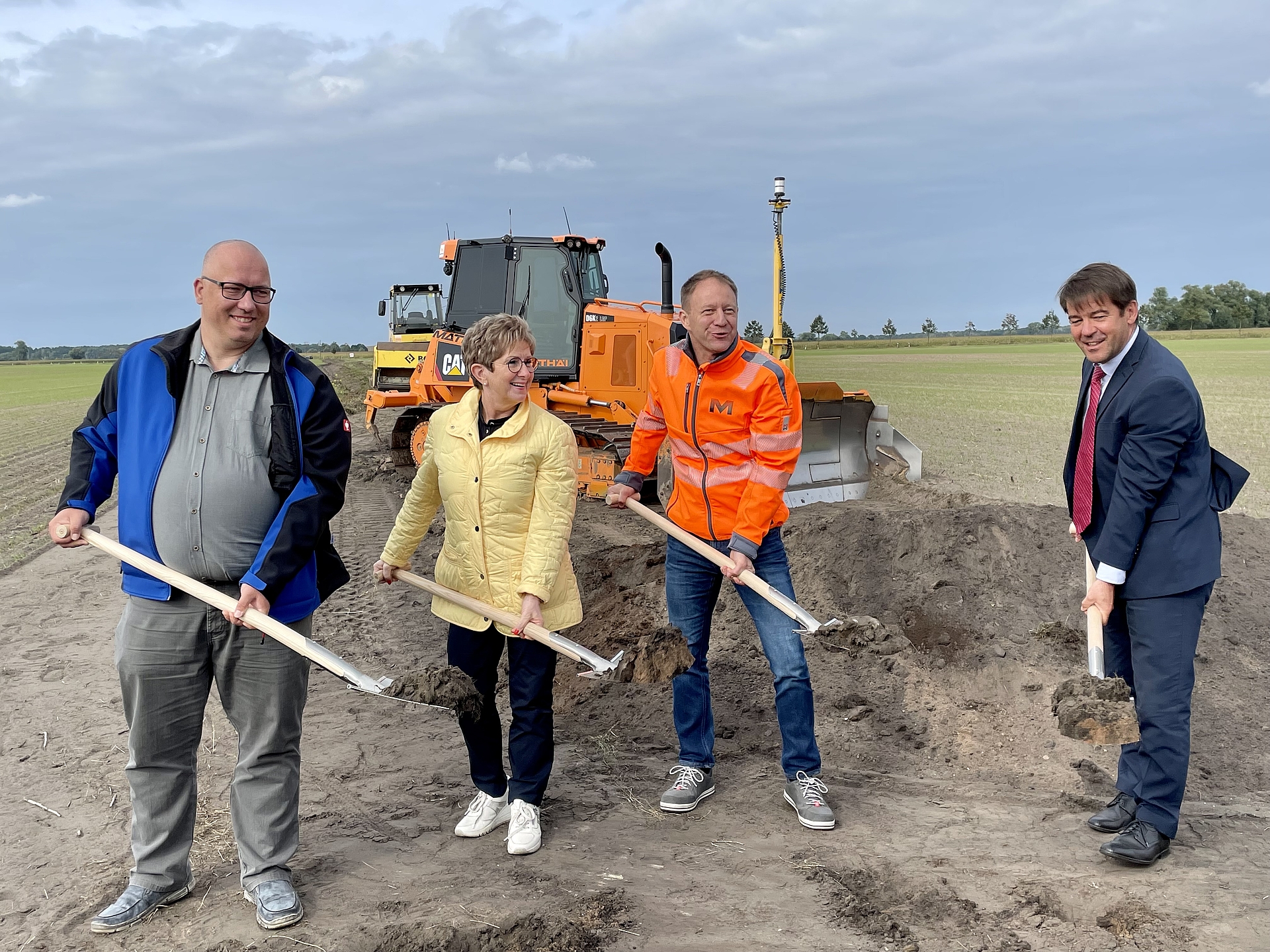 Oberbürgermeister Steffen Scheller hat heute gemeinsam mit Lars Schmidt, Niederlassungsleiter Michendorf der Fa. Matthai, MdB Dr. Dietlind Tiemann und Ortsvorsteher René Mahlow sowie weiteren Gästen aus Wirtschaft, Politik und Verwaltung, den 1. Spatenstich zum Baubeginn des Teilabschnittes des Beetzsee-Havel-Radweges zwischen Klein Kreutz und Saaringen, feierlich vollzogen.