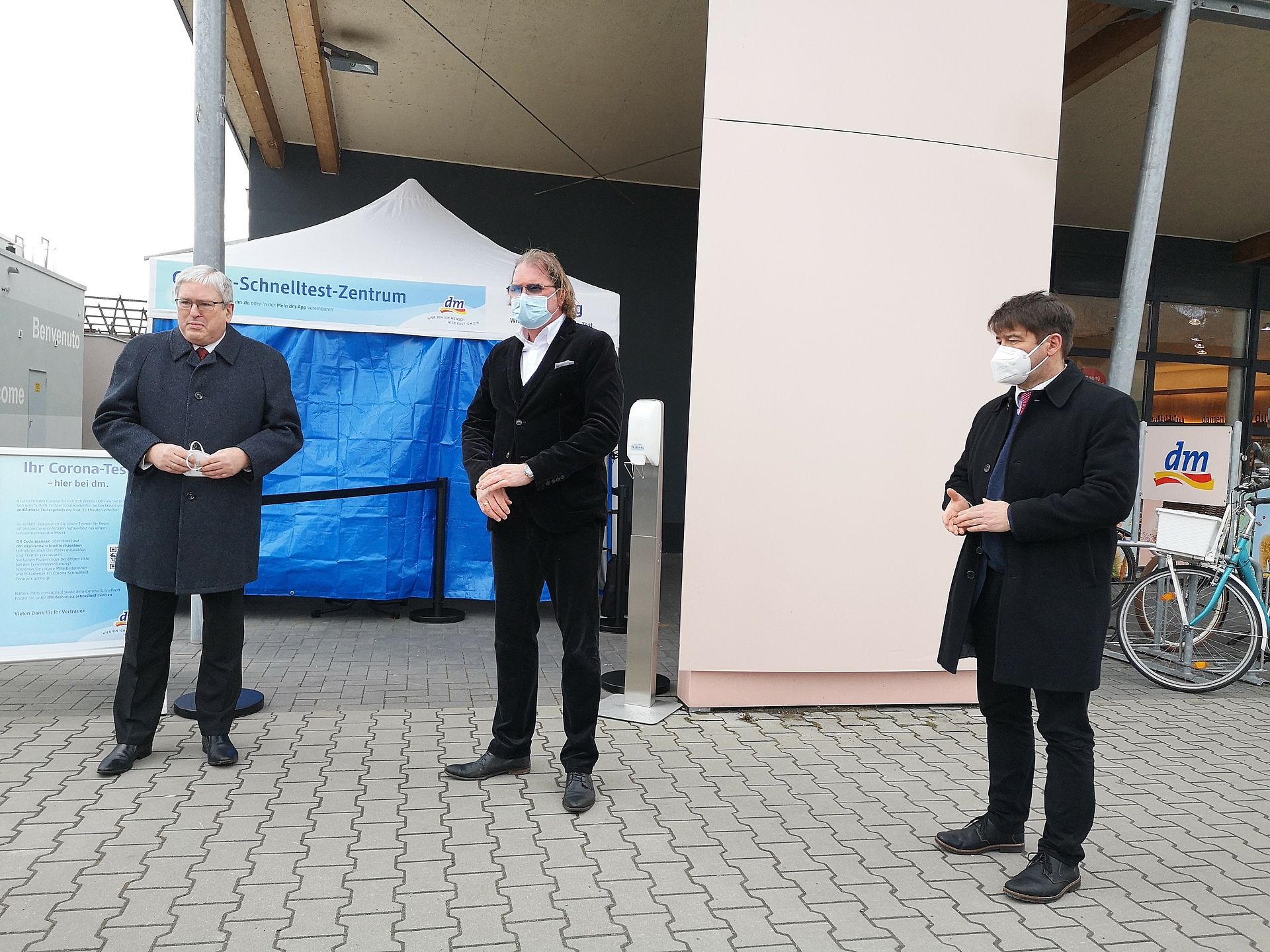 Im Beisein von Oberbürgermeister Steffen Scheller eröffneten Minister Jörg Steinbach und dm-Geschäftsführer Markus Trojansky erstes dm Corona-Schnelltest-Zentrum in Brandenburg an der Havel
