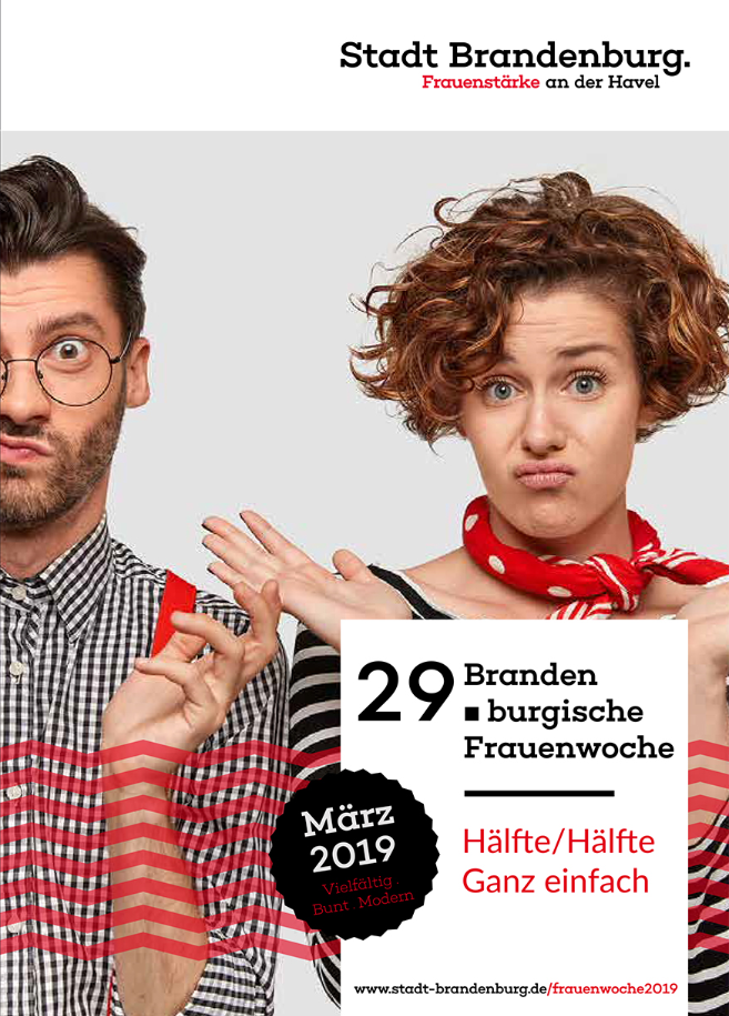unter dem Motto „Hälfte / Hälfte – ganz einfach“ werden sich Veranstaltungen in der Stadt Brandenburg an der Havel um die Frage drehen, welchen Zugang Frauen heute zu ihrer Hälfte haben. Denn obwohl Frauen über 50 Prozent der Bevölkerung ausmachen, bleiben sie bis heute in vielen Bereichen unterrepräsentiert.
