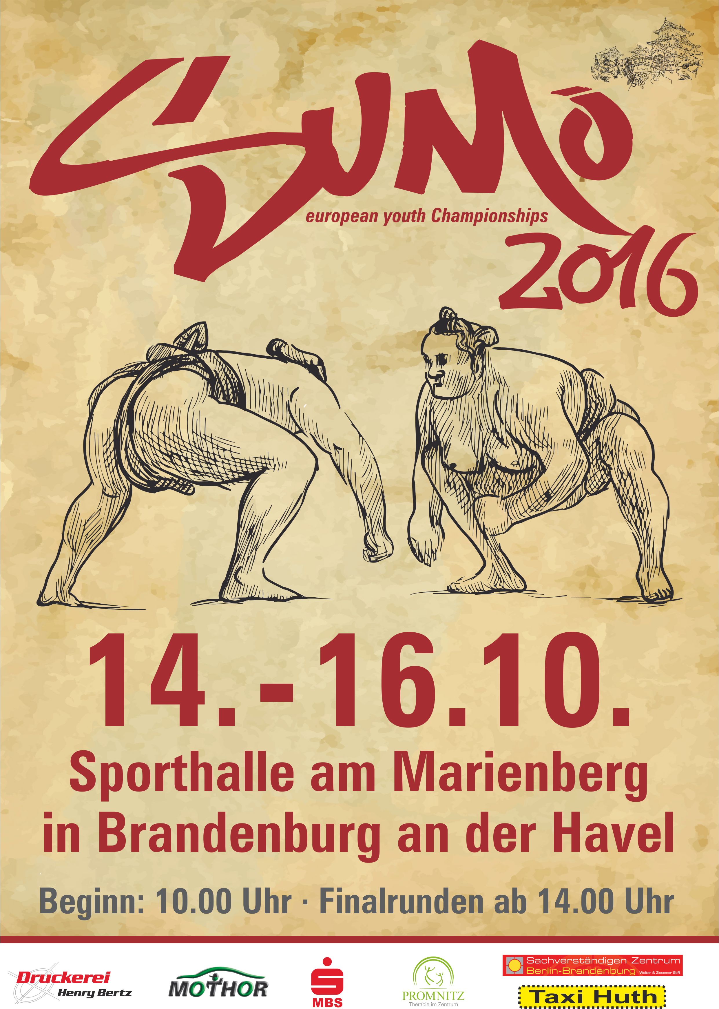 Nach der Ruder-EM und der Kanu-Marathon-WM gibt es in diesem Jahr noch ein weiteres internationales Sport-Highlight. Diesmal steht aber nicht eine Wassersportart im Mittelpunkt des Interesses, sondern die japanische Nationalsportart Sumo. Vom 14. – 16. Oktober 2016 finden in Brandenburg an der Havel die 6. Offiziellen Kinder- und Kadetten-Europameisterschaften der Europäischen Föderation Sumo (EFS) statt. Diese Titelkämpfe wurden von der EFS an die Havelstadt vergeben, da sich hier die deutsche Sumo-Hochburg befindet und mit der mehrfachen Weltmeisterin und Goldmedaillengewinnerin der World Games 2005 Sandra Köppen-Zuckschwerdt eine der erfolgreichsten Sumokämpferinnen des Landes zu Hause ist.