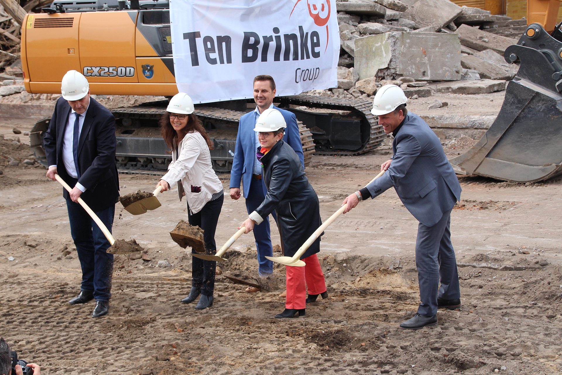 Zum ersten Spatenstich für das neue Pflegeheim auf dem ehemaligen Wiesike-Gelände in der Plauer Straße trafen sich am Dienstag, 16. Mai 2017, Oberbürgermeisterin Dr. Dietlind Tiemann und Vertreter der Deutschland.Immobilien GmbH, des Architekturbüros sowie der Baufirma.