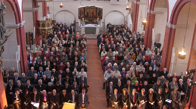 Mit einem Geistlichen Wort eröffnete Dompfarrer André Wiethoelter die Festveranstaltung im voll besetzten Dom zu Brandenburg. Frank Robby Wallis, Präsident des Rotary Clubs Brandenburg/Havel begrüßte die Gäste, zu denen u.a. Landtagspräsident Gunter Fritsch, Innenminister Ralf Holzschuher, Ehrenbürger Prof. Dr. Dr. h.c. Wolfgang Huber und OLG-Präsident Wolf Kahl zählten, bevor die Oberbürgermeisterin der Stadt Brandenburg an der Havel, Dr. Dietlind Tiemann, zu den Anwesenden sprach.