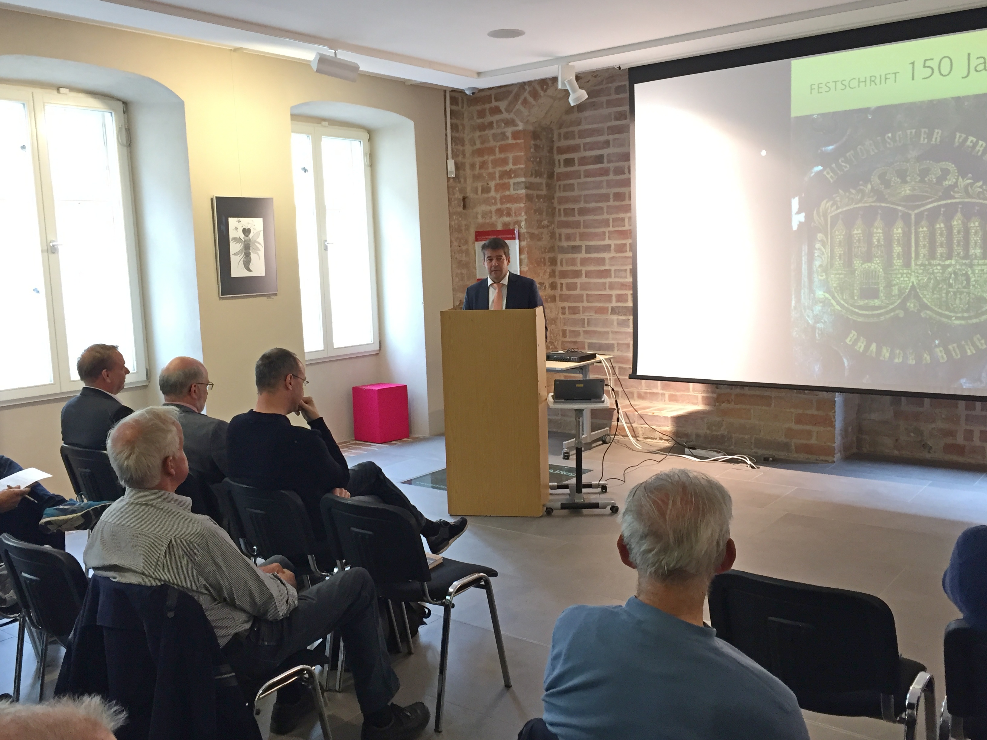 Anlässlich des 150. Geburtstages des Historischen Vereins zu Brandenburg (Havel) präsentierten Udo Geiseler und weitere Vereinsmitglieder die neue Festschrift.